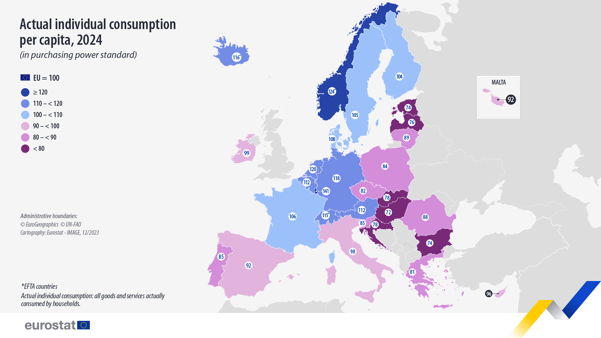 In 2024, household final consumption expenditure in the EU, corrected for inflation, grew by 1.5%…