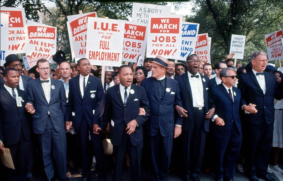 Just as King’s indictments of U.S. capitalism and militarism are often overlooked, omitted, or overshadowed by his civil rights work, the full name and purpose of the August 1963 demonstration—the March on Washington for Jobs and Freedom—have been eclipsed by the iconic speech he delivered there. A year before his April 1968 assassination—which happened while he was supporting striking Black Memphis sanitation workers—King wrote that “we must create full employment or we must create incomes.”