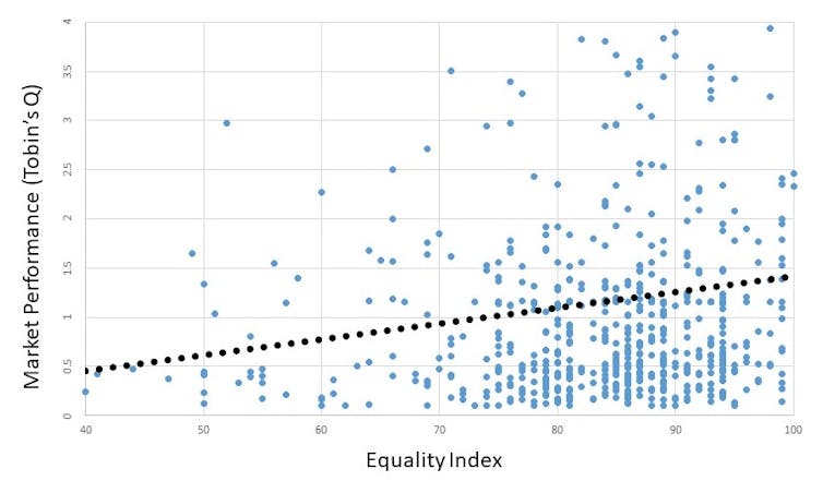 Due to be published in the International Journal of Corporate Governance in the coming months, our latest paper confirms this trend. Surveying data from 228 nonfinancial French listed companies from 2018 to 2021, we found evidence that companies who scored higher on the country’s “Gender Equality Index” also fared better in markets.