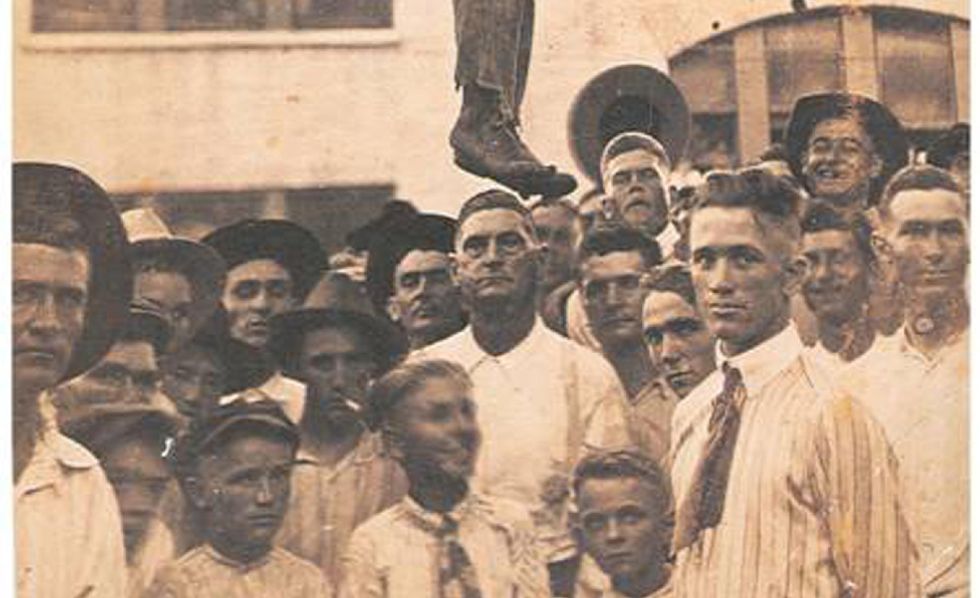 There were, of course, thousands through the 19th and into the 20th century; many featured making a buck on the horrors. On August 7, 1930, a white mob broke into a Marion, Indiana jail to lynch three young black men wrongly accused of murdering a white man and raping a white woman.Thomas Shipp and Abram Smith, both 19, were beaten and tortured, then hung from trees as a crowd of thousands gathered; James Cameron, 16, survived. When the bodies were cut down, people rushed to take parts as souvenirs, and photos were later bought and sold as postcards. On May 25, 1911, Laura Nelson and her teenage son L.D., both black, were kidnapped from an Oklahoma jail and hung from a bridge, where hundreds came to see; more photos as postcards. On June 15, 1920, a white mob of up to 10,000 stormed a jail in Duluth, Minn. holding six black circus workers falsely accused of rape; the crowd got to three – Isaac McGhie, Elias Clayton, Elmer Jackson – and beat and hanged them. More postcards. Warning: very graphic photo here.