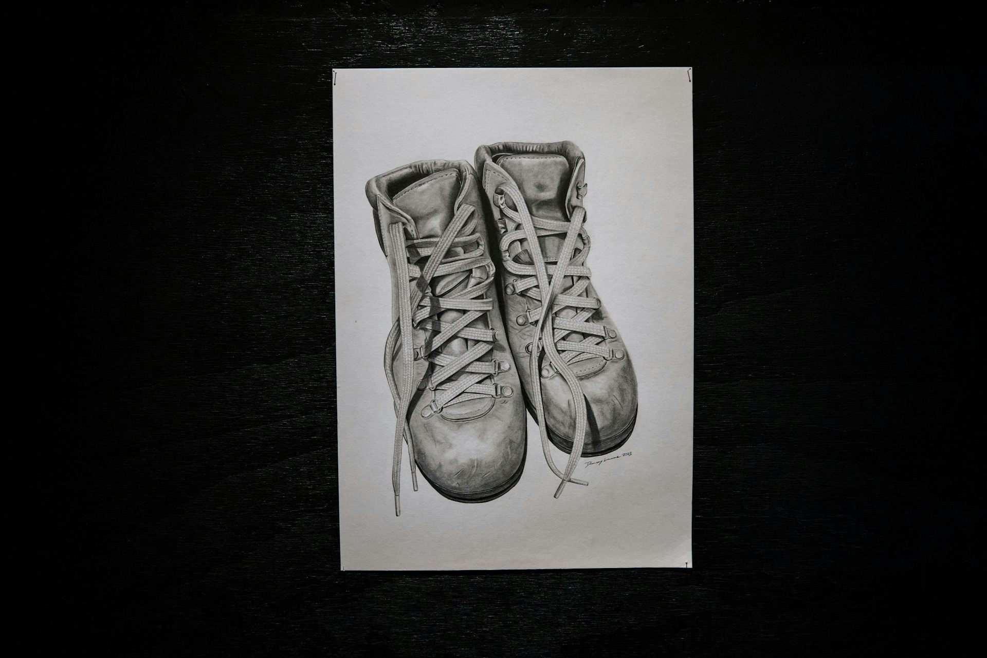 Damien Linnane asked survivors to bring in a treasured object accompanied by a story of the object. His detailed, beautiful drawings focus on the power of memory to evoke the resilience of survival.