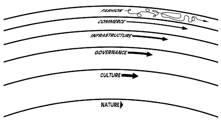 The US writer Stewart Brand has argued that a “healthy civilisation” requires different systems or layers to move at different speeds: