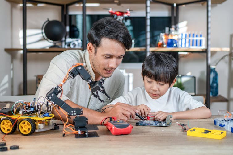 When parents talk to their children about their STEM-related interests and share their knowledge, children are more likely to learn that they can grow up to be both a parent and a STEM person. This approach can have an outsize effect on young women who grow up with the expectation of raising a family one day.