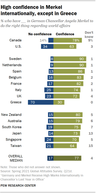 Most in Europe and the Asia-Pacific region are confident in Merkel