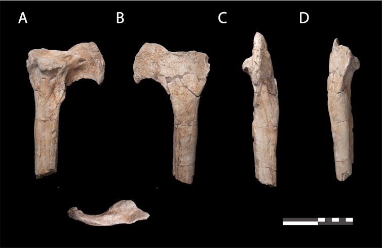 Tibia of a new abelisaurid from Sidi Chennane, in Morocco. Nick Longrich.