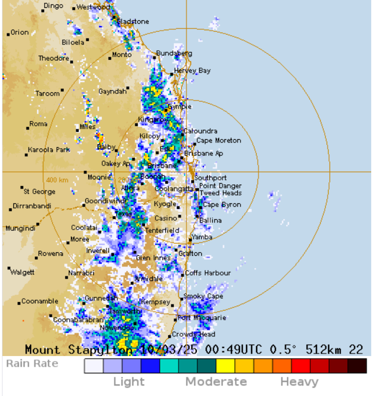 This is a significant weather event because these rainbands are stretching from as far north as Bundaberg in Queensland, right down to Inverell and further south in NSW. And if you’re under one of these rain bands, there’s a risk of flash flooding.