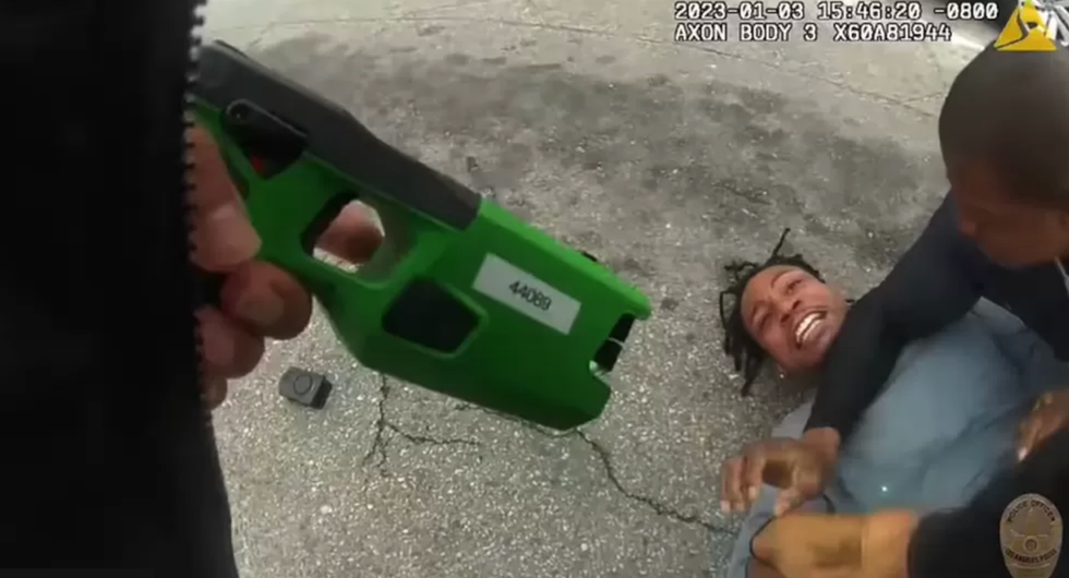 Seconds later, one of the officers uses the Taser on Anderson several times as he pleads for help.