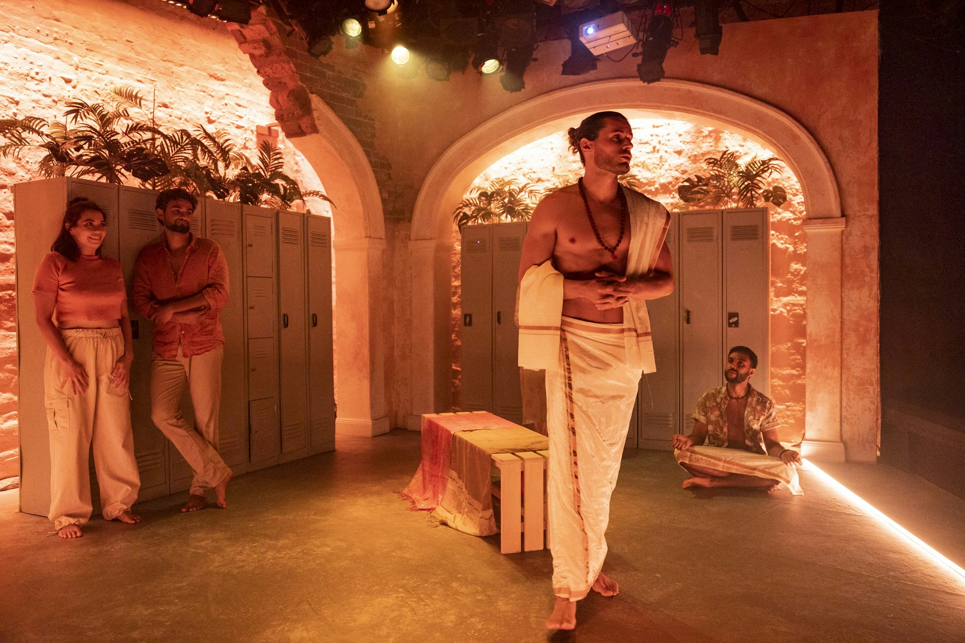 The play opens in a throbbing red-light filled locker room as Ard Panicker (Raj Labade) is thrust into an awkward conversation with his mother, Cindy (Blazey Best), which reveals as much as it conceals.
