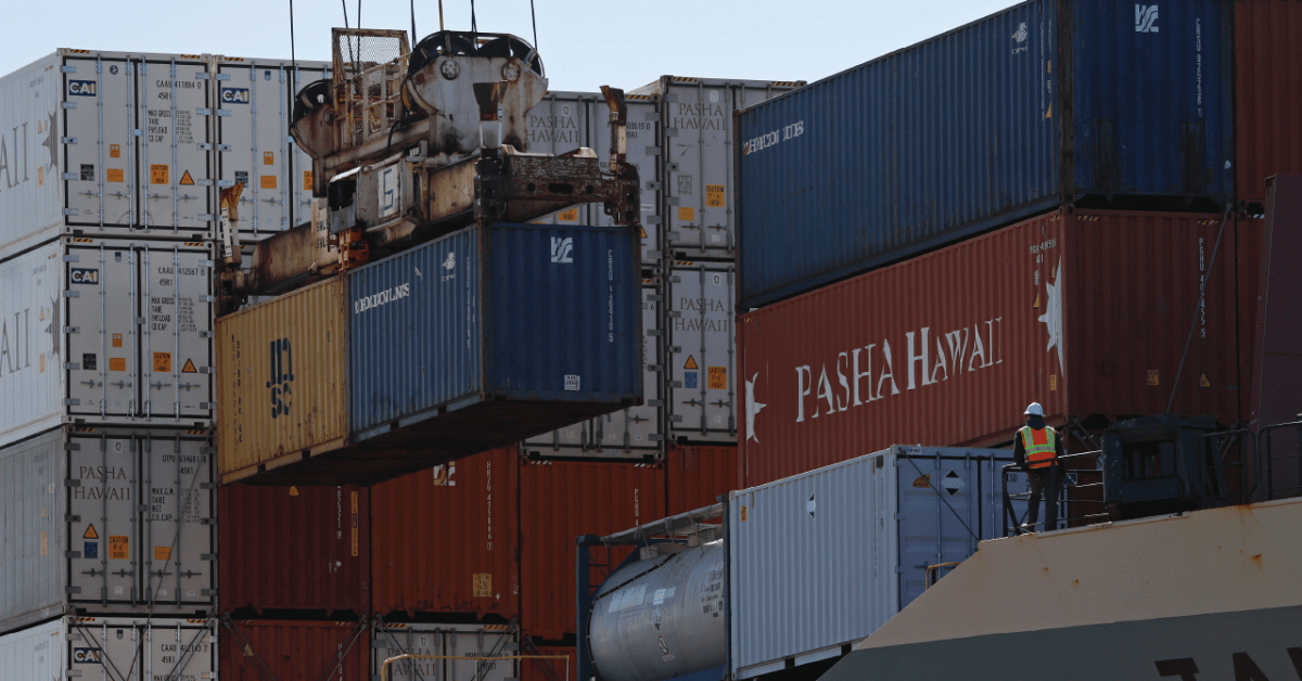 Shipping containers are offloaded at the Port of Oakland in California on April 2, 2025. (Justin Sullivan/Getty Images)